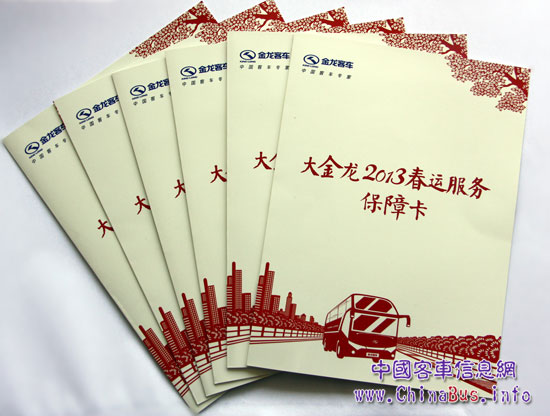 張志堅表示,大金龍通過總結歷年服務春運的種種經驗,針對2013年春運的特點,在人員調度、車輛檢測、備件保障、應急救援等方面都做好了準備,建立起一套統(tǒng)一協(xié)調、職責明晰、運作高效的“無縫對接”保障服務體系,公司將秉持 “專業(yè)、快速、客戶滿意”的售后服務理念,著力打造“優(yōu)質、快捷、主動” 的優(yōu)質高效服務,保障春運期間用戶的金龍客車正常安全行駛,為每位乘客的安全護航。