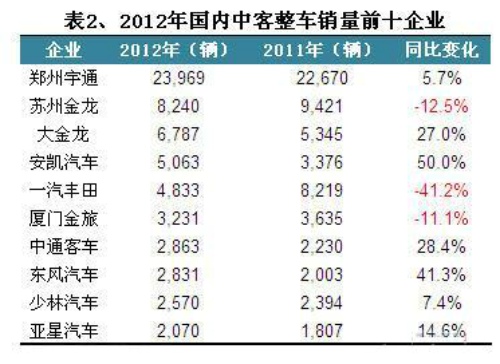 2012年我國(guó)客車(chē)市場(chǎng)銷(xiāo)量分析