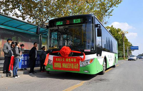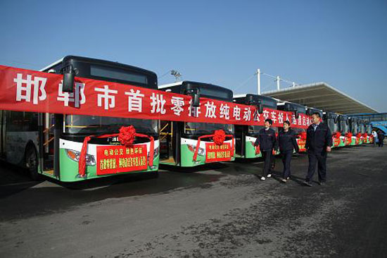 這是10月15日在河北省邯鄲市高鐵站南公交樞紐拍攝的即將投入使用的純電動(dòng)公交車。當(dāng)日,首批20輛純電動(dòng)公交車在河北省邯鄲市內(nèi)投入使用。據(jù)介紹,純電動(dòng)公交車與目前大量使用的燃油、天然氣公交車相比更環(huán)保。