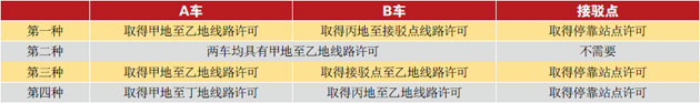 第四種方式,涉及增設(shè)?空军c(diǎn)、更換運(yùn)輸車輛的問(wèn)題,如兩車經(jīng)營(yíng)線路無(wú)重合部分,則涉及到改變行駛路線問(wèn)題。