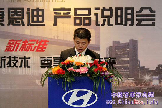 11月8日上午,康恩迪湖北區(qū)產(chǎn)品說明會在武漢東湖賓館大酒店隆重召開,正式推出高端商旅康恩迪客車。四川現(xiàn)代汽車有限公司銷售本部副本部長鄧曉靈、四川現(xiàn)代汽車有限公司宣傳培訓科科長李鐘德(韓國)、湖北天運澤諶忠勇總經(jīng)理、重要嘉賓和武漢各大主流媒體共同參加本次說明會。
