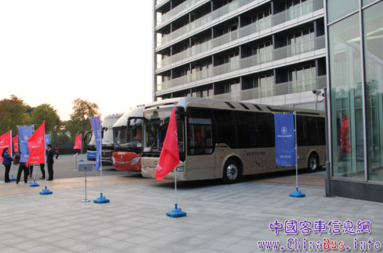 會(huì)議結(jié)束,嘉賓都迫不及待地走到室外,急欲親自體驗(yàn)一下維特思達(dá)客車(chē)的與眾不同。的確,遠(yuǎn)遠(yuǎn)地,我們就被它們穩(wěn)重和諧、大氣時(shí)尚所吸引。5輛車(chē)靜靜停在院中,形成了一道特有的風(fēng)景,吸引著我們加快了走進(jìn)它們的腳步。