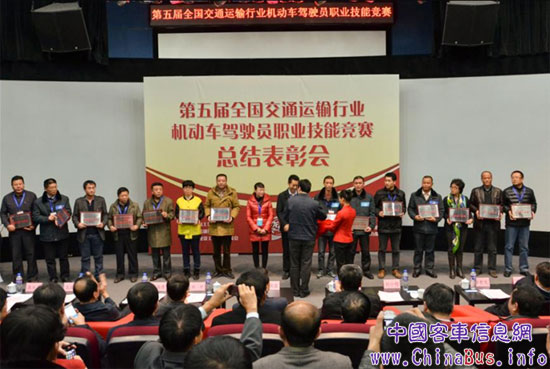 駕駛精英展風采,會師京城競風流。經(jīng)過兩天緊張激烈的角逐,2013年11月26日下午,全國交通運輸行業(yè)“金龍龍翼杯”機動車駕駛員職業(yè)技能競賽(以下簡稱“金龍龍翼杯”)在北京汽車博物館圓滿落下帷幕。安徽省合肥客運公司駕駛員施健從來自全國的50位駕駛精英中勝出,獲得“金龍龍翼杯”個人一等獎,并將報請全國總工會授予“全國五一勞動獎章”。大賽組委會名譽主任、交通運輸部副部長馮正霖為其頒獎。
