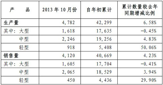 鄭州宇通客車股份有限公司2013年10月份產(chǎn)銷數(shù)據(jù)快報(bào)如下(單位:輛):