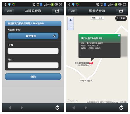 龍翼微信服務(wù)平臺的發(fā)布,進(jìn)一步豐富了運輸企業(yè)用戶使用龍翼車聯(lián)網(wǎng)系統(tǒng)的訪問通道,從基于B/S架構(gòu)的Web訪問,到手機應(yīng)用的掌上龍翼訪問,再到微信平臺訪問。龍翼系統(tǒng)的微信服務(wù)平臺兼容各種手機操作系統(tǒng),優(yōu)化手機用戶訪問龍翼系統(tǒng)的可操作性和便利性。用戶可以隨時隨地使用龍翼系統(tǒng),實時掌控車輛運營情況。目前,該服務(wù)平臺已成功推出網(wǎng)上車場、故障碼查詢、服務(wù)站查詢等車輛監(jiān)控和售后服務(wù)功能。