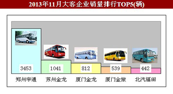 2013年11月份,大型客車整車產(chǎn)銷8446輛和8363輛,生產(chǎn)環(huán)比增長52.57%,生產(chǎn)同比增長13.66%,銷售環(huán)比增長50.71%,銷售同比增長18.46%。1-11月累計產(chǎn)銷67309輛和67008輛,同比累計分別增長2.56%和3.00%。