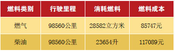 經(jīng)統(tǒng)計(jì),平均百公里耗氣量40.1立方米,平均百公里耗油25升,現(xiàn)在0#柴油價(jià)格為7.37元/升,燃?xì)鈨r(jià)格為3.6元/方)。以上對比可見,單車年節(jié)約燃料成本56523.15元(折合柴油7669.22升),節(jié)約燃料成本25%以上。