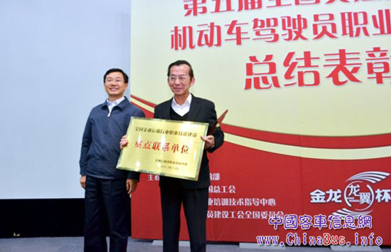 交通運(yùn)輸部職業(yè)資格中心主任申少君向大金龍總經(jīng)理郭仁祥授牌