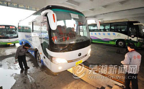 為做好2013年春運(yùn)道路交通安全管理工作,蕪湖運(yùn)泰集團(tuán)汽車客運(yùn)站加大對(duì)春運(yùn)客運(yùn)車輛的管理力度,對(duì)車輛橫(直)拉桿、轉(zhuǎn)向器、燈光以及車內(nèi)安全防火設(shè)施等情況進(jìn)行嚴(yán)格細(xì)致的檢查,保障客運(yùn)車輛安全運(yùn)行。