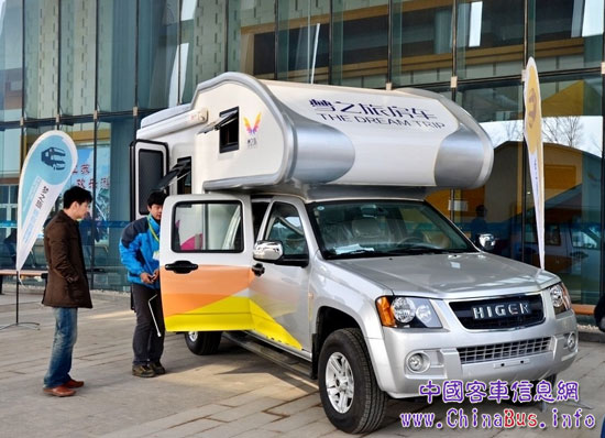 隨著人們生活水平的提高和對(duì)生活品味的追求,自駕游、背包族已漸成旅游消費(fèi)市場(chǎng)的主力軍,而親近大地、親近天空、親近自然這種自由隨性的旅游方式更是漸獲成功人士的青睞。據(jù)海格工作人員介紹,此次展會(huì),海格客車除了展出此款豪華VIP房車外,還帶來了由海格皮卡改裝而制的實(shí)用小型房車。這款自駕式房車各類設(shè)施一應(yīng)俱全,完全可以滿足一家人外出遠(yuǎn)足的需求,每輛售價(jià)不到19萬元,不久前才推向市場(chǎng),僅僅1個(gè)多月就銷售了60多輛,市場(chǎng)前景良好。