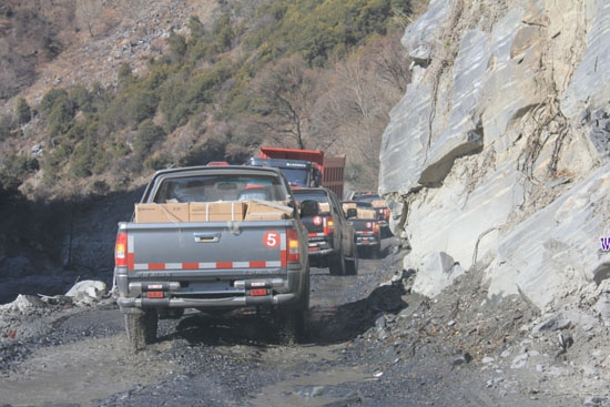 左邊是懸崖,右邊是落石,中間是泥濘道路