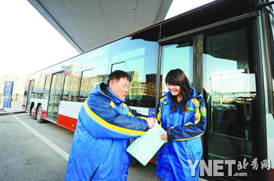 前日記者在四惠公交場(chǎng)站看到,車(chē)隊(duì)工作人員正在進(jìn)行最后的準(zhǔn)備工作。車(chē)輛已經(jīng)清潔一新,車(chē)前玻璃上貼有LNG的綠色標(biāo)識(shí)。
