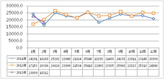 2013年1-2月輕客市場(chǎng)月度銷量走勢(shì)