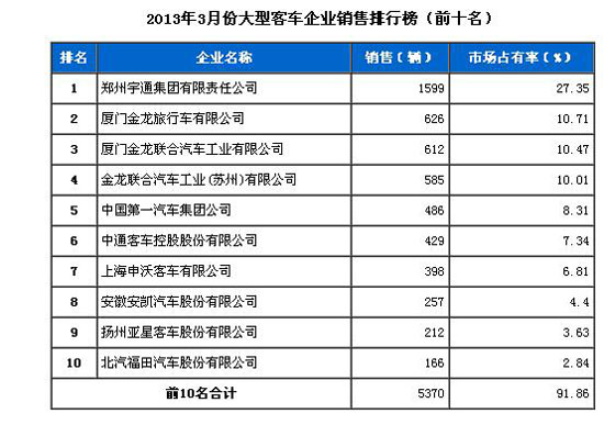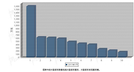 2013年3月大型客車企業(yè)銷售排行前十