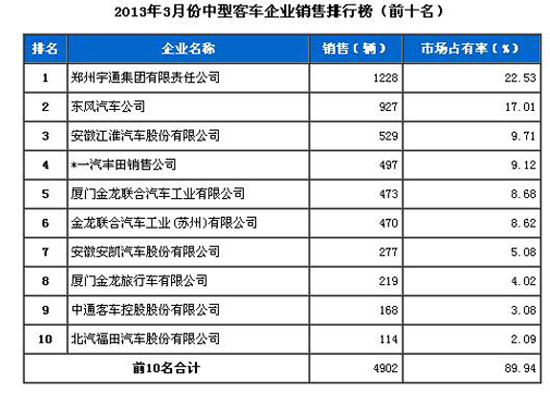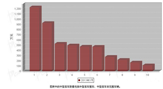 2013年3月中型客車企業(yè)銷售排行前十
