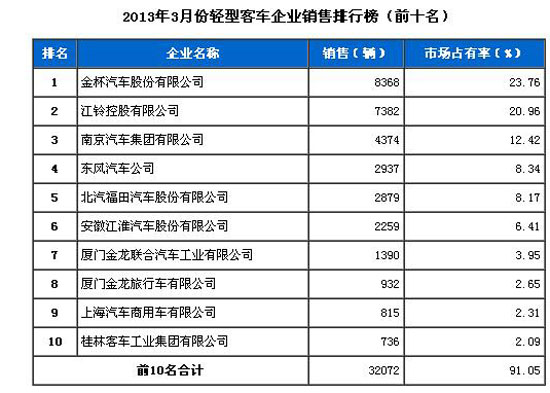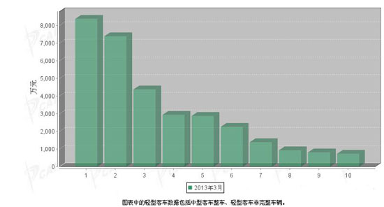 2013年3月輕型客車企業(yè)銷售排行前十