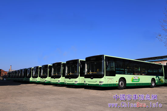 整裝待發(fā)的黃海天然氣公交車