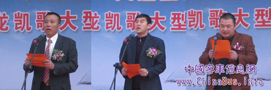 上市發(fā)布會于上午10:10正式開始,大連鑫龍總經(jīng)理陳鎮(zhèn)波先生首先上臺致辭,他宣布大連鑫龍正式開業(yè),公司將以金龍凱歌新車上市為契機,與金龍汽車通力合作,共同開拓東北市場。接著大金龍輕客事業(yè)部東北區(qū)域經(jīng)理孫光和客戶代表李洪斌先生也上臺講話和發(fā)言。