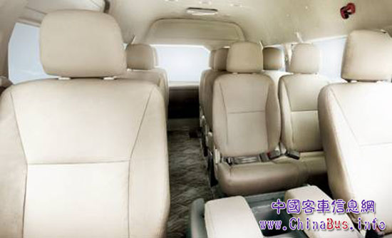 乘客區(qū)享有同級車最大的商務(wù)空間,滑開中門,第一眼就是寬敞的空間、豪華的內(nèi)飾。整車內(nèi)部空間達到3460/1680/1560mm(長/寬/高),過道空間310mm,空間寬適宜人。座椅采用豪華舒適商務(wù)座椅,符合人體工程學原理,后排四人座椅可折疊、側(cè)翻,多樣組合,空間靈活,商務(wù)、旅行更方便。全車側(cè)窗和后窗密閉式整體隱私玻璃、良好的環(huán)繞立體聲音響以及比利時先進的NVH減震降噪技術(shù),一切均為打造豪華舒適的商旅體驗。