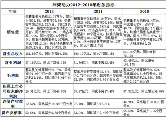 這是濰柴動力近日公布的2012年度財報關(guān)鍵信息。
