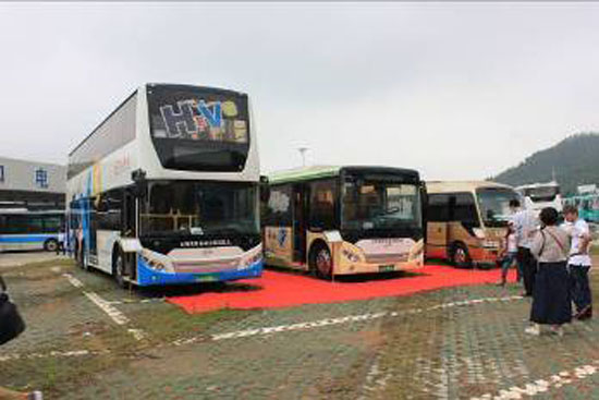 在比賽現(xiàn)場(chǎng)亮相展出的三款深圳五洲龍最新旗艦車型