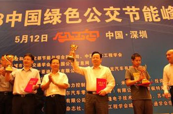 在2013年首屆中國公共汽車節(jié)能大賽中,深圳五洲龍汽車公司生產(chǎn)的12米純電動公共汽車從參賽的14家全國主流客車品牌中脫穎而出,一舉奪取本次大賽純電動車組金獎。同時,參賽的另外二款車型油電混合動力和氣電混合動力也分別獲得了銀獎和銅獎,成為全場斬獲獎項最多的客車企業(yè)。