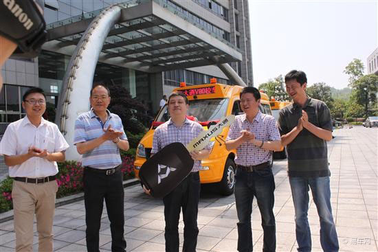 上汽大通廠家領(lǐng)導(dǎo)郭經(jīng)理將鑰匙交付給株州市蘆淞區(qū)教育局領(lǐng)導(dǎo)