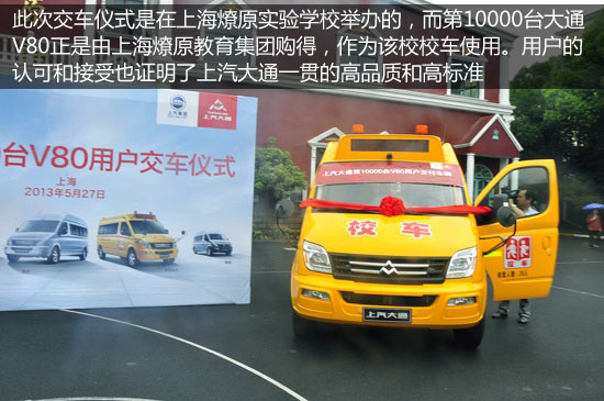 隨著本次第10000臺V80用戶交車儀式的成功舉行,上汽大通正式進(jìn)入商用車“萬輛俱樂部”,相信在速度與創(chuàng)新的雙向驅(qū)動(dòng)下,2013年上汽大通將會帶給市場和消費(fèi)者更多的驚喜。