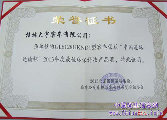 為了降低油耗、節(jié)能減排,燃氣客車日益受到運營客戶的青睞。在第三屆“國際道路運輸、城市公交車輛及零部件展覽會上,桂林大宇客車推出的GL6128HKND天然氣(LNG)客車,備受關(guān)注,一舉榮獲2013“中國道路運輸杯”最佳環(huán)保科技獎。
