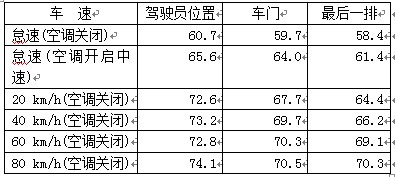 表2  金旅XML6700J68考斯特客車勻速行駛車內(nèi)噪聲測(cè)試   dB