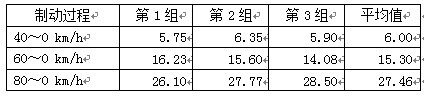 表3  金旅XML6700J68考斯特客車制動(dòng)距離測(cè)試  m