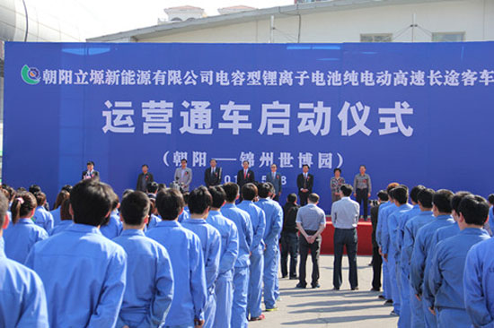 5月8日,純電動(dòng)高速長(zhǎng)途客車(chē)啟動(dòng)運(yùn)營(yíng)儀式在遼寧省朝陽(yáng)市舉行,這標(biāo)志著世界上第一條以電容型鋰離子電池為動(dòng)力的純電動(dòng)客車(chē)高速長(zhǎng)途運(yùn)營(yíng)線正式開(kāi)通。
