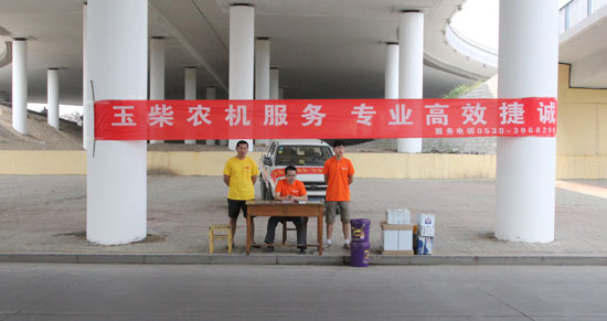 當(dāng)來到玉柴菏澤技術(shù)服務(wù)站的時(shí)候,記者感到非常奇怪,菏澤服務(wù)站從配件室到調(diào)度室包括車間管理都非常的正規(guī),甚至在辦公室掛滿了用戶用來表示感謝的錦旗,可就是沒有看到服務(wù)車,詢問過才知道,原來所有的服務(wù)車已經(jīng)隨服務(wù)隊(duì)員去各個(gè)鄉(xiāng)鎮(zhèn)免費(fèi)為用戶檢查機(jī)器、講解機(jī)器的保養(yǎng)知識(shí)、派發(fā)保養(yǎng)宣傳冊(cè)及服務(wù)隊(duì)通訊錄了。