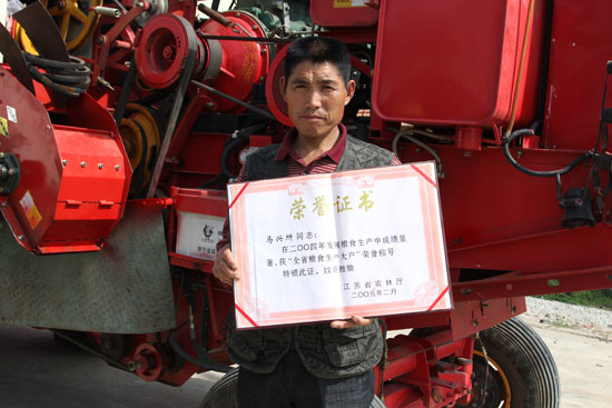 江蘇省連云港東海縣的馬興所在2013年種了200 hm2 (3000畝)的小麥,是當(dāng)?shù)赜忻姆N糧大戶。他從1979年就開始接觸農(nóng)業(yè)機(jī)械,30多年了用過多個(gè)品牌的機(jī)器,對(duì)農(nóng)業(yè)機(jī)械非常熟悉,稱得上是農(nóng)機(jī)老行家了。