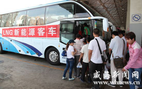 在威海汽車站,旅客乘坐天然氣新能源客車。