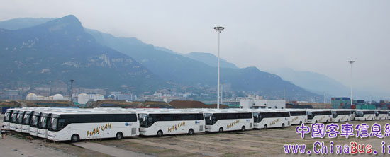 安凱客車正在從連云港港口碼頭裝船發(fā)往沙特