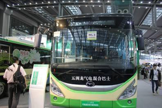 獲得2013年中國公共汽車節(jié)能大賽銅獎的五洲龍氣電混合城市客車亦亮相本次展會