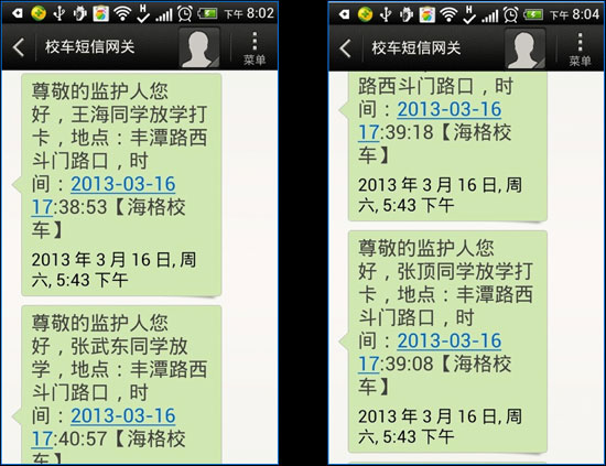 學(xué)生刷卡后家長(zhǎng)收到短信提醒