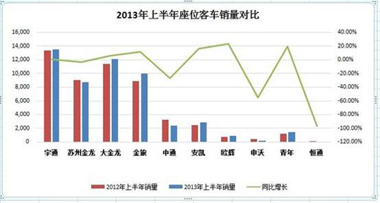 從行業(yè)角度來看,在近兩年商用車市場整體不景氣的大勢中,客車一直保持著不錯(cuò)的市場表現(xiàn),但今年上半年商用車整體市場增長6.7%的大勢之下,客車市場的增長卻表現(xiàn)平平。