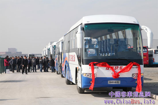 12月6日,風(fēng)和日麗,海格客車廠區(qū)迎來一批新朋友————湖北捷龍交通運業(yè)有限公司,他們精神飽滿,喜氣洋洋,只為迎接他們即將出廠的新伙伴————36臺KLQ6119T型大巴、5臺KLQ6796中巴、1臺KLQ6702中巴。