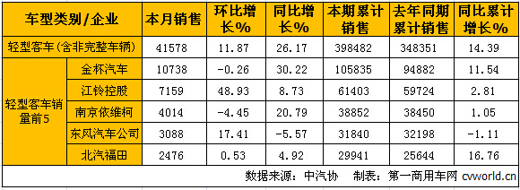 輕型客車銷量情況: