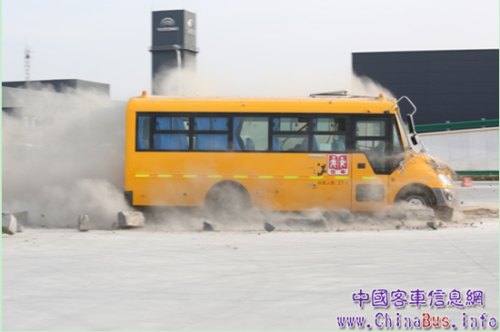 事實(shí)上,即使是更厲害的碰撞,比方說更大型的車輛,或者更堅(jiān)固的設(shè)施,宇通校車也是可以應(yīng)付的。獨(dú)特的長頭設(shè)計(jì)——“大鼻子”,可以讓碰撞發(fā)生的時(shí)候,最大程度的起到緩沖作用。在東方衛(wèi)視《巔峰拍擋》第五集中,田亮親自駕駛宇通校車撞向一堵寬約三十公分的水泥硬墻,墻壁坍塌塵土滾滾,但校車受損極少,連車頭大燈都沒有破損,駕乘人員生存空間未受侵入,發(fā)動(dòng)機(jī)能夠照常啟動(dòng)并駛離現(xiàn)場,宇通校車的安全性由此可見一斑。