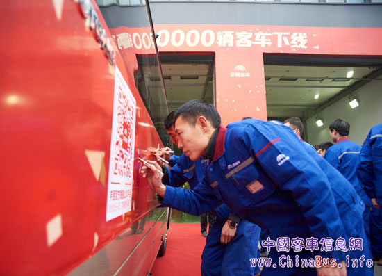 員工代表在第6萬輛客車上簽名