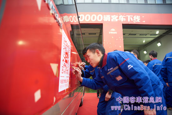 員工代表在第6萬輛客車上簽名