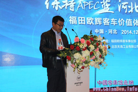 12月5日,福田歐輝客車攜手80余位河北省公路、旅游、團(tuán)體客戶,舉辦了“保持APEC藍(lán) 河北在行動(dòng)”的價(jià)值體驗(yàn)之旅主題活動(dòng)。會(huì)上,大家共同探討霧霾治理問題,實(shí)現(xiàn)綠色交通,從選擇清潔與新能源交通工具開始,為讓城市重現(xiàn)APEC藍(lán)做出自己的一份貢獻(xiàn)。