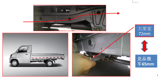 1、承載性設(shè)計元素。越野底盤,彎梁設(shè)計,科技領(lǐng)先,采用剛板折彎激光焊接,強(qiáng)度極高,不易變形,不易扭曲,大梁寬達(dá)75mm,遠(yuǎn)高于競品。扎實穩(wěn)固底盤。鋼板彈簧厚度達(dá)13mm,起到良好的緩沖、減振的作用。圓形加強(qiáng)橫梁直徑52mm,增強(qiáng)底盤剛度,增強(qiáng)車廂承載力。Φ180后橋的橋殼加厚為80*6,進(jìn)一步加強(qiáng)承載力。