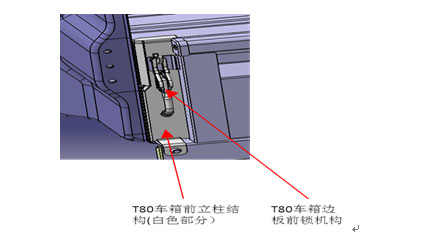 2、前立柱設(shè)計元素。解放小卡T80車箱增加前立柱結(jié)構(gòu),使車箱前部強(qiáng)度加大(老型車箱無獨(dú)立前立柱結(jié)構(gòu)強(qiáng)度弱易變形外張)。