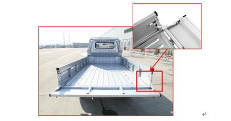 5、車箱尾門鏈條設(shè)計元素。車箱尾板平放有固定鏈條連接,方便裝載超長貨物。