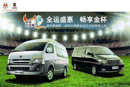 2013年8月31日,第十二屆全運(yùn)會(huì)開幕式在沈陽奧體中心舉行,這個(gè)被稱為“奧運(yùn)會(huì)預(yù)選賽”的賽事得到了全國人民的熱切關(guān)注。作為第十二屆全運(yùn)會(huì)的官方合作伙伴,華晨金杯同期在成都車展(1號展館H104展臺(tái))上推出金杯全運(yùn)紀(jì)念版,與消費(fèi)者共襄盛舉。全運(yùn)紀(jì)念版車型包括金杯大海獅W全運(yùn)紀(jì)念版(售價(jià)11.98萬元起,柴油車型)和閣瑞斯全運(yùn)紀(jì)念版(售價(jià)8.98萬元起)兩款車型。至此,華晨金杯的四大生產(chǎn)平臺(tái)羽翼更加豐滿,涵蓋了從商務(wù)接待、商旅出行、城市貨運(yùn)輕客、家用MPV、跨界SUV等多條產(chǎn)品線,車型達(dá)到數(shù)百種,為商務(wù)人士及家庭用車提供了全方位的選擇空間。