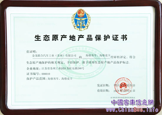 海格客車(chē)和海格皮卡獲生態(tài)原產(chǎn)地證書(shū)